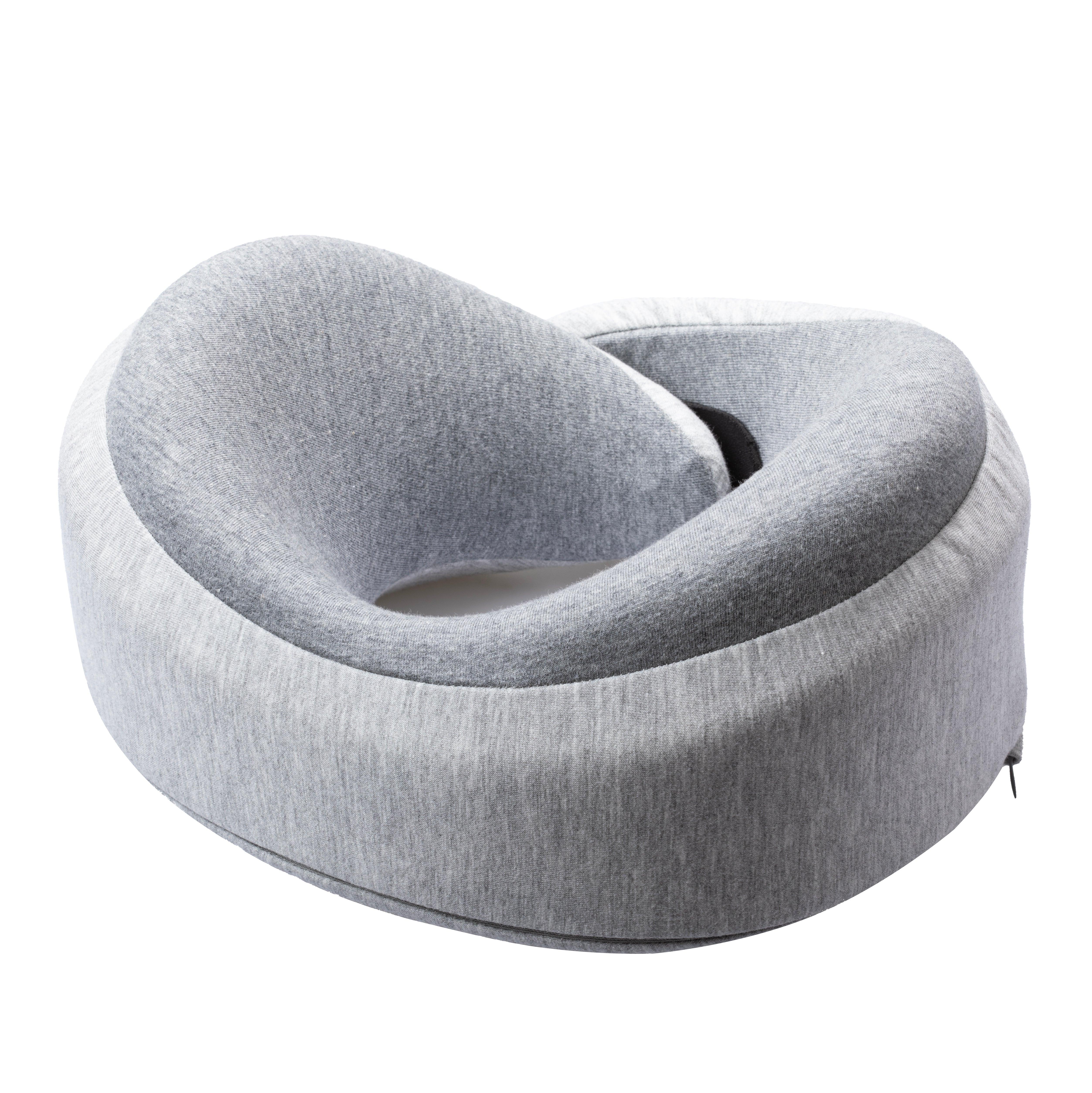 Proglobe Light Gray Memory Foam Travel Neck Pillow for Airplanes – Lightweight Ergonomic Chin Support Pillow with Compression Bag